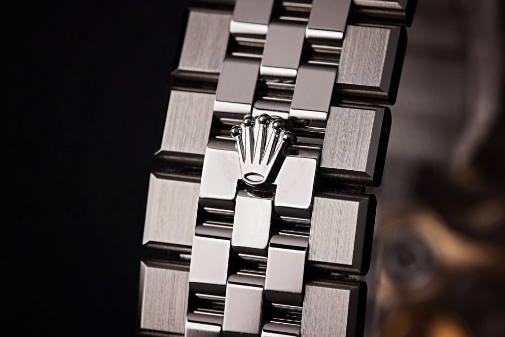 Das Flat Jubilee-Armband der Replik ist eines der Highlights, das mit breiten, flachen Gliedern perfekt in das Gehäuse integriert ist. Die gebürsteten äußeren Glieder und die polierten Mittelglieder erzeugen einen visuellen Rhythmus, der mit dem authentischen Stück identisch ist, und das Armband behält die gleiche glatte Flexibilität bei, die das Jubilee berühmt gemacht hat.