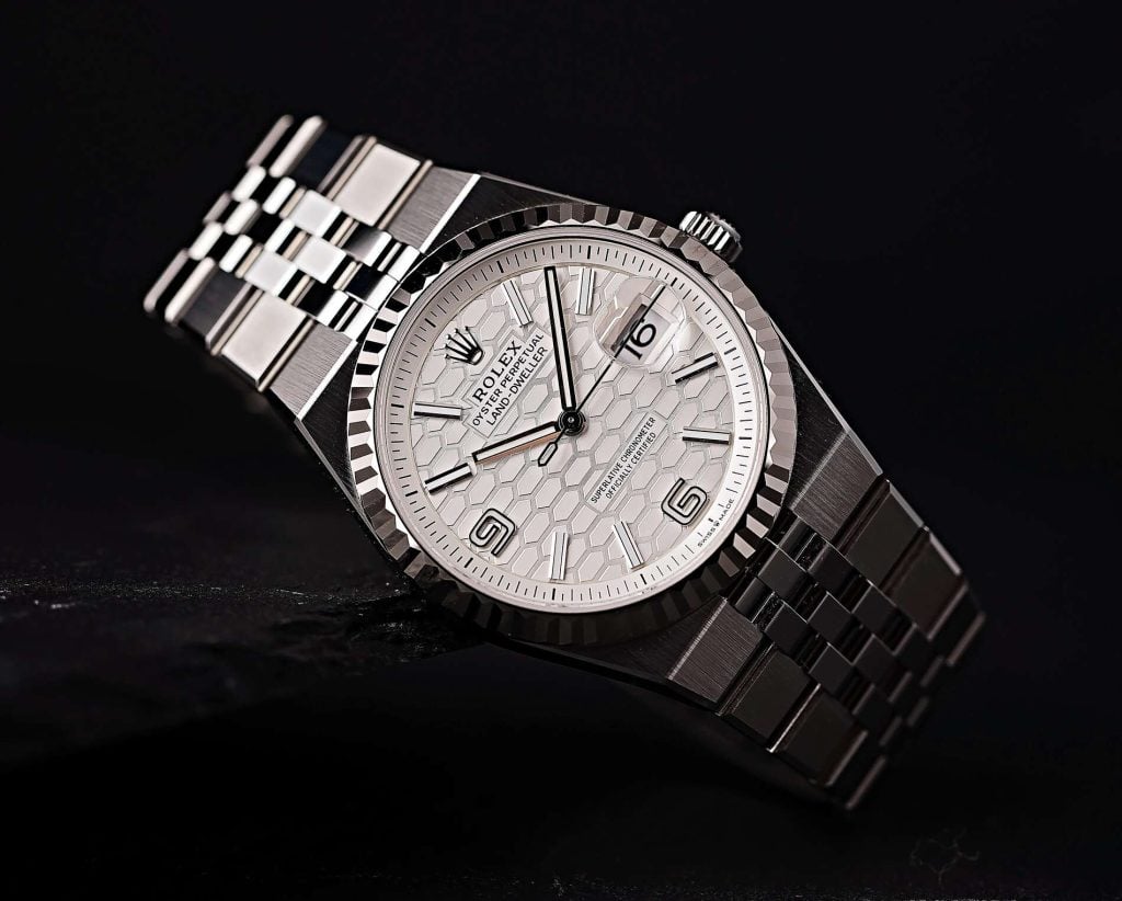 Das Zifferblatt der Replik 127234 ist der Ort, an dem ein Großteil der Magie stattfindet. Das Wabenmuster, inspiriert von der fortschrittlichen Lasergravur von Rolex, wird sorgfältig reproduziert, um Tiefe und Textur zu erzeugen. Die Oberfläche des intensiven weißen Zifferblatts verschiebt sich subtil mit der Beleuchtung, genau wie bei der echten Uhr.