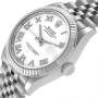 Zifferblatt: Weißes Zifferblatt mit Weißgold-Römischen Ziffern als Stundenmarkierungen und Stabzeigern. Datumskalender bei der 3-Uhr-Apertur.