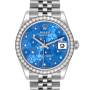 Zifferblatt: Blaues Blumenmotiv-Zifferblatt mit einem Rolex-Fabrik-Diamantbesatz-Zifferblatt. Datumskalender bei 3 Uhr.