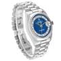 Rolex President Day-Date Platin Myriaden-Diamant-Zifferblatt Herrenuhr 18206. Offiziell zertifiziertes Chronometer Automatikwerk mit Schnellverstellfunktion für das Datum. Platin Oyster-Gehäuse mit 36 mm Durchmesser. Rolex-Logo auf der Krone. Platin glatte gewölbte Lünette. Kratzfestes Saphirglas mit Zyklop-Lupe. Blaues Myriaden-Diamant-Zifferblatt mit originalen Rolex-Werks-Diamant-Stundenmarkierungen. Zentralsekundenzeiger. Äußere Minuten- und 1/2-Sekunden-Teilung, Fenster für den Wochentag bei 12 Uhr, Fenster für das Datum bei 3 Uhr. Platin Präsidenten-Armband mit versteckter Schließe. Passt auf ein 7-Zoll-Handgelenk.