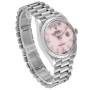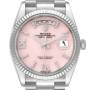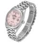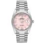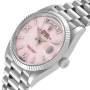 Zifferblatt: Rosa Opalstein-Zifferblatt mit originalen Rolex-Werksdiamanten in römischen Ziffern als Stundeneinteilung. Zentralsekundenzeiger. Äußere Minuten- und 1/2-Sekunden-Einteilung, Apertur für den Wochentag bei 12 Uhr, Apertur für das Datum bei 3 Uhr. Arabische Wochentags- und Datumsräder.