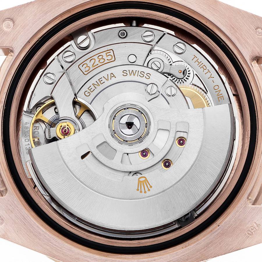 Gehäuse: Oyster-Gehäuse aus 18K Roségold mit einem Durchmesser von 40,0 mm. Rolex-Logo auf der Krone. Spitze Kronenschützer.