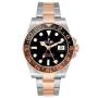 Lünette: 18K-Roségold bidirektionale drehbare schwarze und braune "Root Beer" Cerachrom-Keramiklünette. Graviert mit einer 24-Stunden-GMT-Skala.