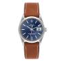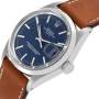 Replica Rolex Date Blue Sigma Zifferblatt Vintage Stahl Herrenuhr 1500. Offiziell zertifiziertes Chronometer Automatikaufzugswerk. Edelstahl Oyster-Gehäuse mit 34,0 mm Durchmesser. Rolex-Logo auf der Krone. Edelstahl glatte Lünette. Acrylglas mit Zyklop-Lupe. Blaues Zifferblatt mit erhabenen, leuchtenden Stabindexen und Stabzeigern aus Edelstahl. Datumsfenster bei 3 Uhr. Maßgefertigtes braunes Lederarmband mit Rolex Edelstahl Dornschließe.