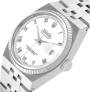 Zifferblatt: Weißes Zifferblatt mit erhabenen römischen Ziffern. Datumsfenster bei 3 Uhr.