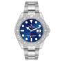 Zifferblatt: Blaues Zifferblatt mit leuchtenden Punkt-, Stab- und Dreieck-Stundenmarkierungen. Leuchtende Mercedes-Zeiger. Minutenmarkierungen um den äußeren Rand. Datumskalender bei der 3-Uhr-Apertur.