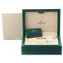 Gehäuse: Austerngehäuse aus 18 Karat Weißgold mit 42,0 mm Durchmesser und Diamantösen. Geschraubter Gehäuseboden und Krone, Triplock-Wicklung, geschützt durch Diamantkronen ex-Schutzkrone. Rolex-Krone auf der Krone. Lünette mit Äußere Minutentrennungen, Mercedes-Zeiger mit leuchtenden Einsätzen und lutscherbestückten Mittelsekunden. Datumskalender an der 3-Uhr-Öffnung.