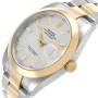 Zifferblatt: Silbernes Zifferblatt mit leuchtenden Stundenteilern und Gelbgold-Stundenteilern. Datumsfenster bei der 3-Uhr-Position.