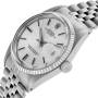Zifferblatt: Silbernes Sigma-Zifferblatt mit erhabenen 18-karätigen Weißgold-Baton-Stundenmarkierungen. Leuchtende stabförmige Zeiger. Datumskalender bei der 3-Uhr-Apertur.