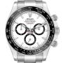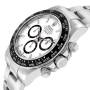 Zifferblatt: Weißes "Panda"-Zifferblatt mit leuchtenden Stundenmarkierungen und Zeigern. Drei schwarz umrandete Chronographen-Unterzifferblätter – 60 Sekunden bei 6 Uhr, 30 Minuten bei 3 Uhr und 12 Stunden bei 9 Uhr.
