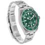 Zifferblatt: Grünes Zifferblatt mit weißen leuchtenden Mercedes-Zeigern und Maxi-Stundenmarkierungen. Datumskalender bei der 3-Uhr-Apertur.