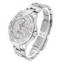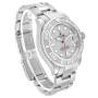 Zifferblatt: Platin-Zifferblatt mit leuchtenden Punkten als Stundenskalen und Mercedes-Zeigern. Leuchtender roter Lollipop-Spitzen-Zentrumsekundenzeiger. Stabförmige Minutenskalen am äußeren Rand. Datumsanzeige bei der 3-Uhr-Apertur.